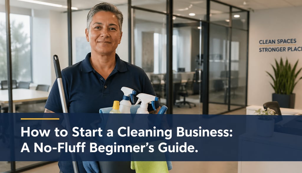 A no-fluff, experience-based guide for beginners who want to start a cleaning business — covering licensing, equipment, pricing, getting first clients, and the simple systems that keep it running.